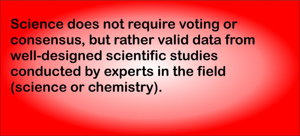 Science does not require voting or consensus, but rather valid data from well-designed scientific studies conducted by experts in the field (science or chemistry).