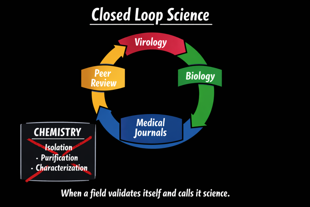 In true science—particularly chemistry—existence requires isolation, purification, and physical and chemical characterization. Without these steps, claims remain presumptive. This is not a minor technical detail; it is the foundation of scientific validation, which is absent. The reason this error persists is that many working in medicine and biology are not trained in science, where material identification is mandatory and rigorously enforced.